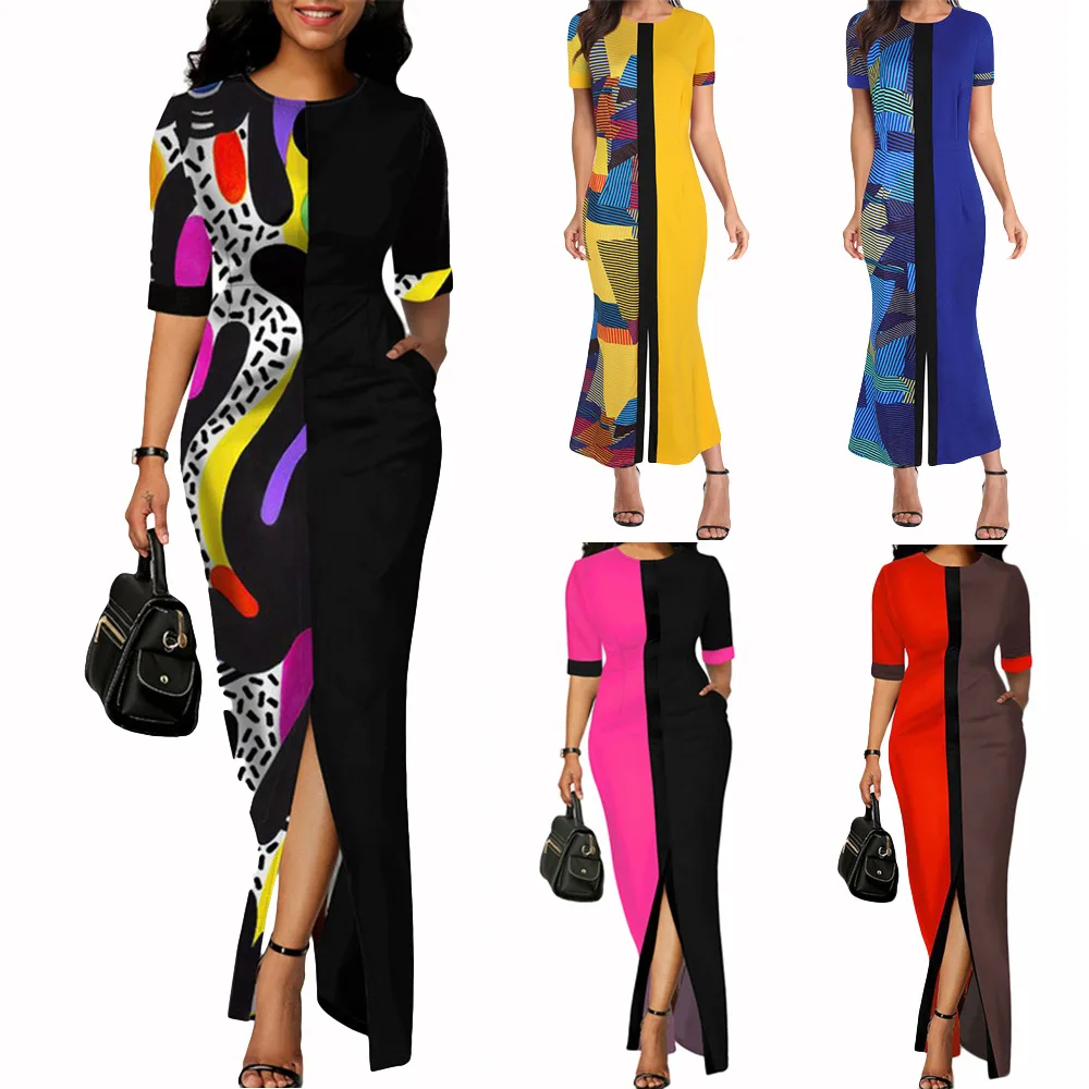 Африканские платья для женщин, лето 2021, африканские женские длинные платья с коротким рукавом, африканская одежда для женщин