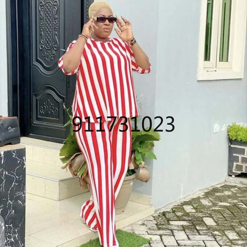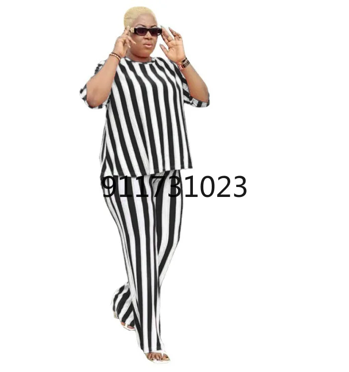 Африканская одежда в полоску для женщин, комплект из 2 предметов, футболка, топы и брюки, модные костюмы с рукавом 34, повседневные африканские офисные женские наряды