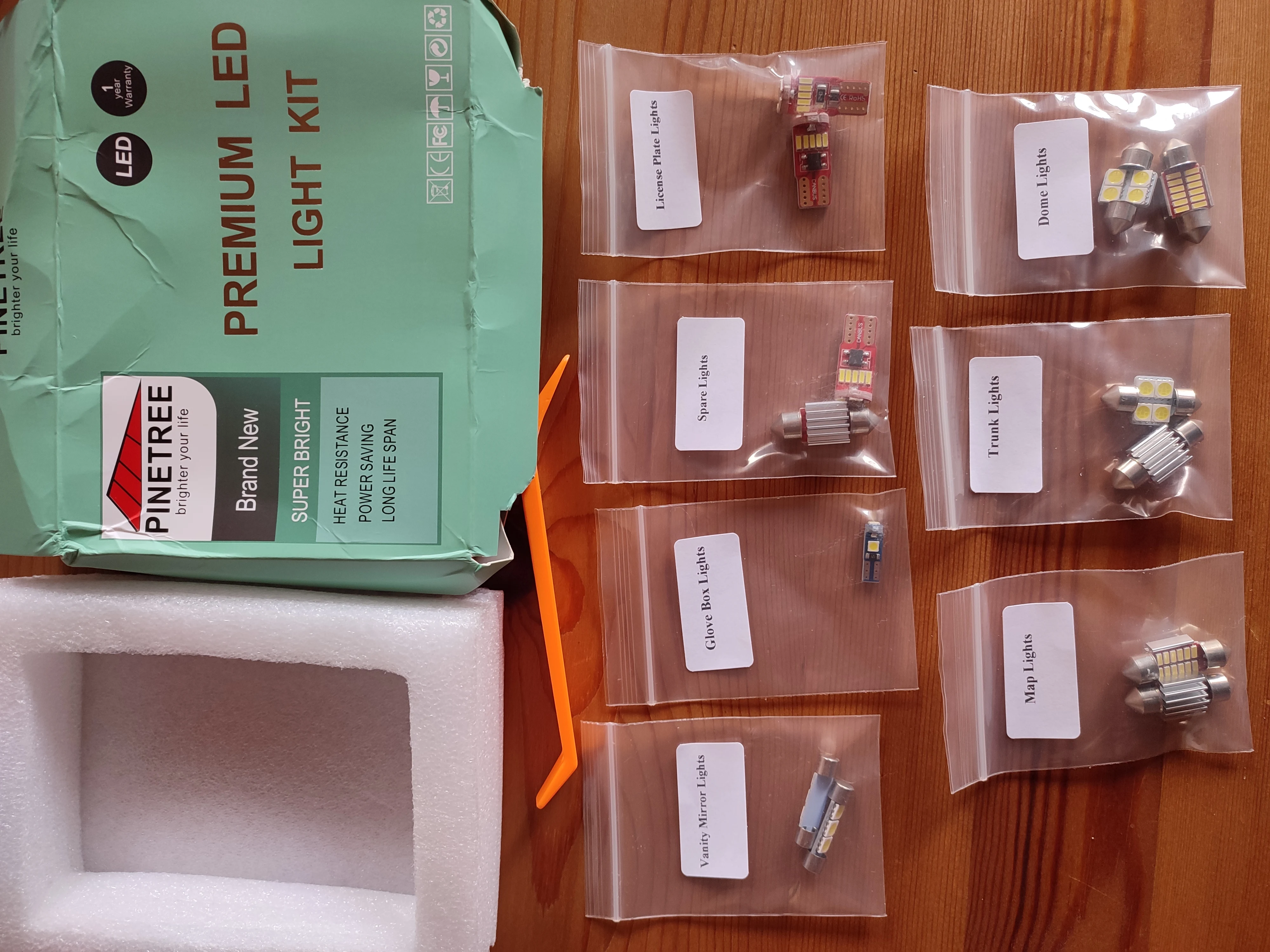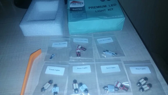 Немного расстроился. Свет в салоне довольно заметно мерцает. Если будет раздражать, придется назад галогенки воткнуть. Остальной набор мне просто не нужен т. к. и так диодная оптика по кругу. В общем, по мне, надо было просто 3 лампочки купить а не платить за кейс!