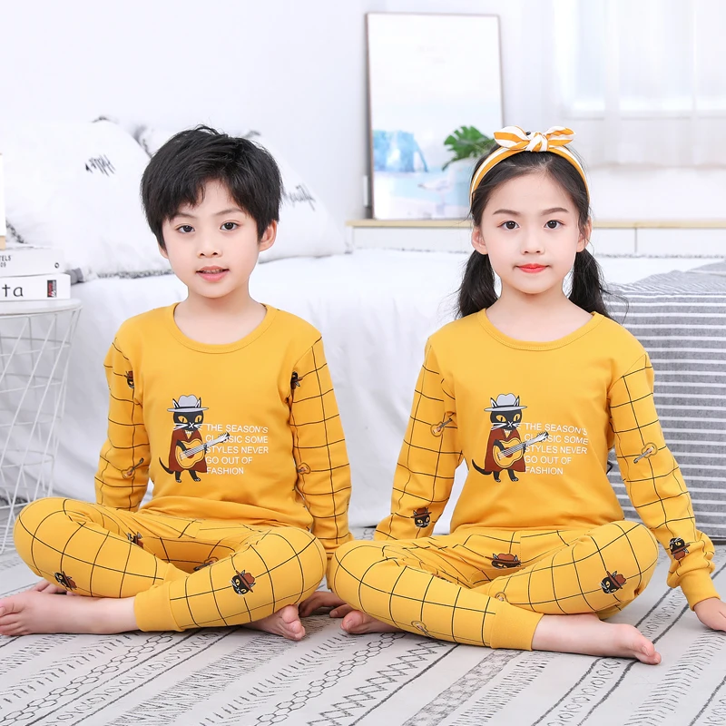Весенне-осенние пижамные комплекты с длинными рукавами для мальчиков и девочек подходит для детей 2, 3, 4, 5, 6, 7, 8 От 9 до 14 лет