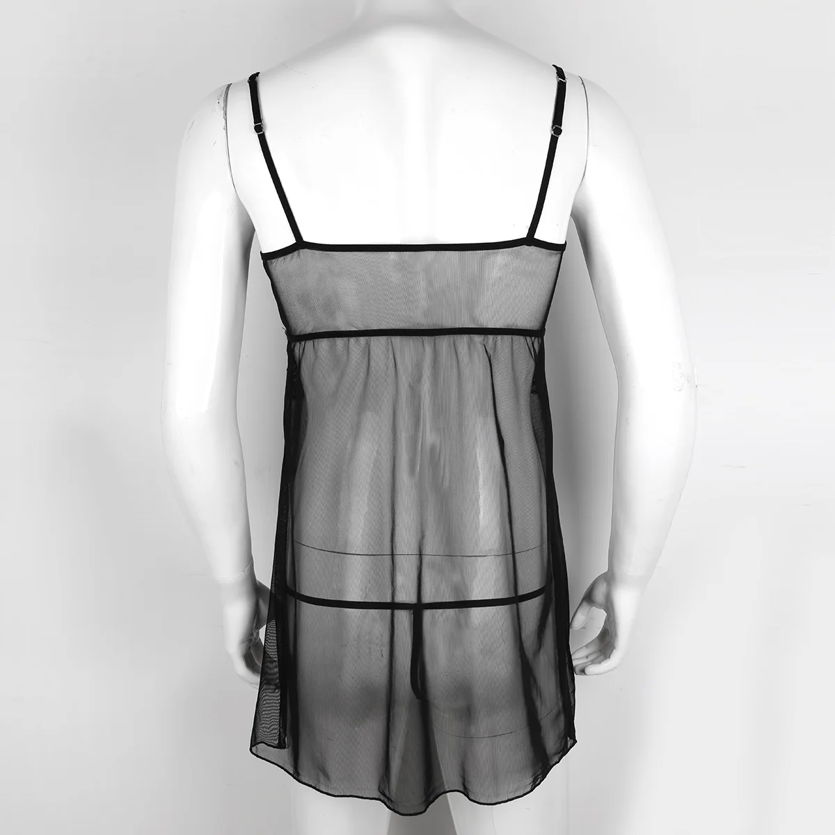 Летнее сексуальное мужское нижнее белье из 2 предметов, прозрачное Сетчатое мини-платье без рукавов с стрингами, стринги, одежда для сна, комплект одежды для сна