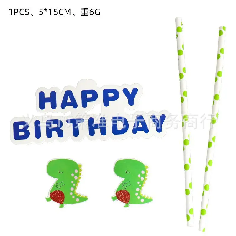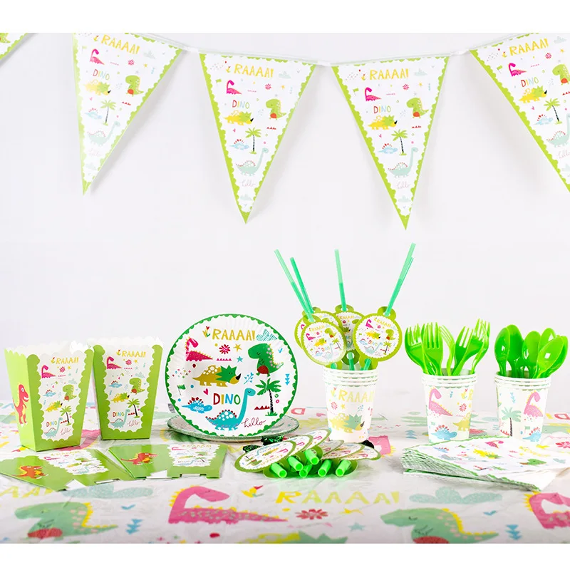 Мультяшный маленький зеленый динозавр украшение для дня рождения одноразовая посуда бумажный флаг наклейка детский душ праздвечерние чные атрибуты