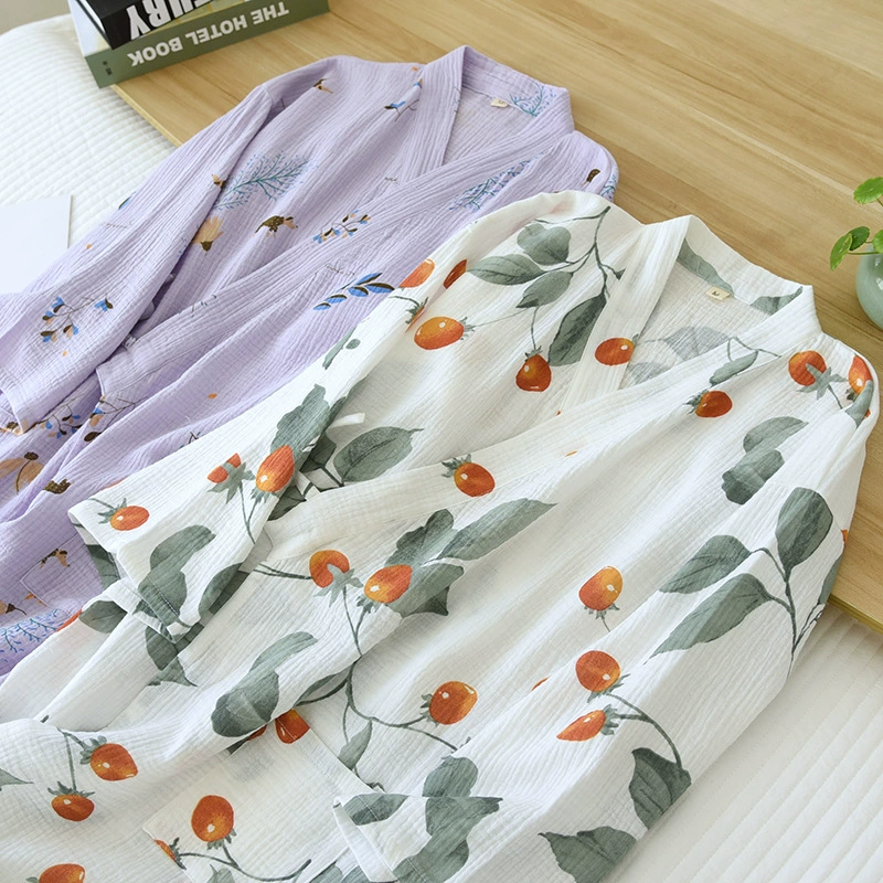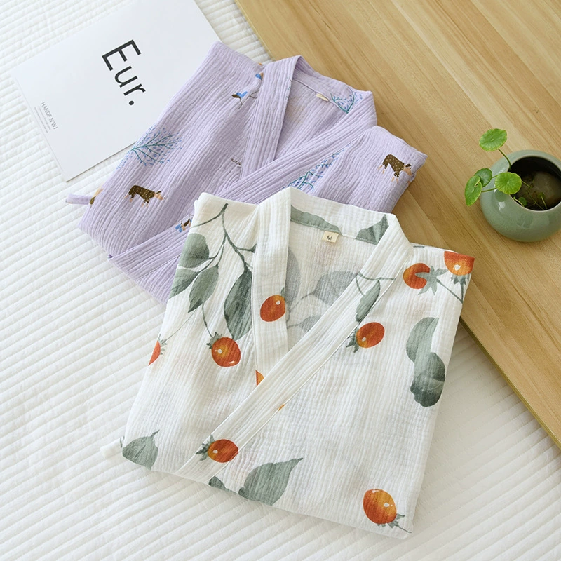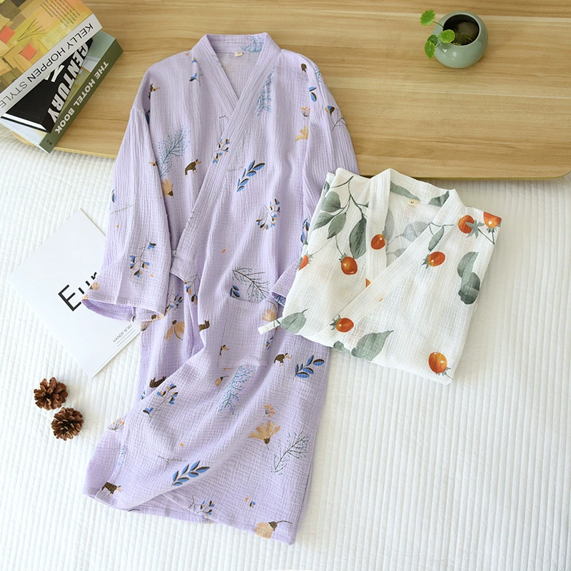 Новое японское кимоно, халат для женщин, Весна 100%, повседневные банные халаты из крепа и хлопка, одежда для сна, Женская ночнушка