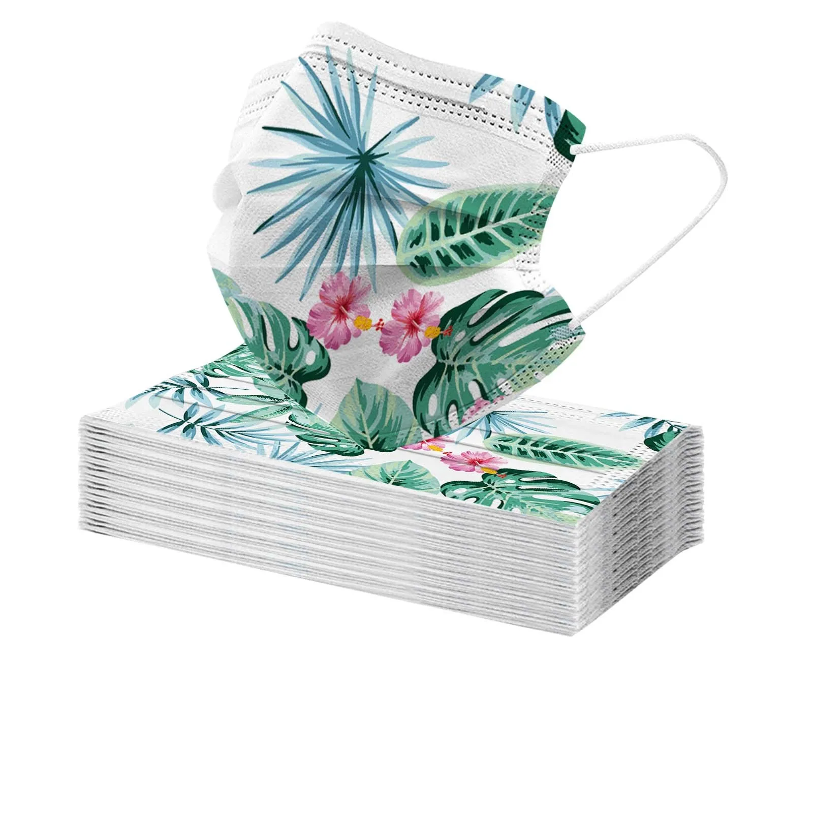 30 шт., летняя одноразовая 3-слойная маска для лица с красивыми цветами и принтом для взрослых
