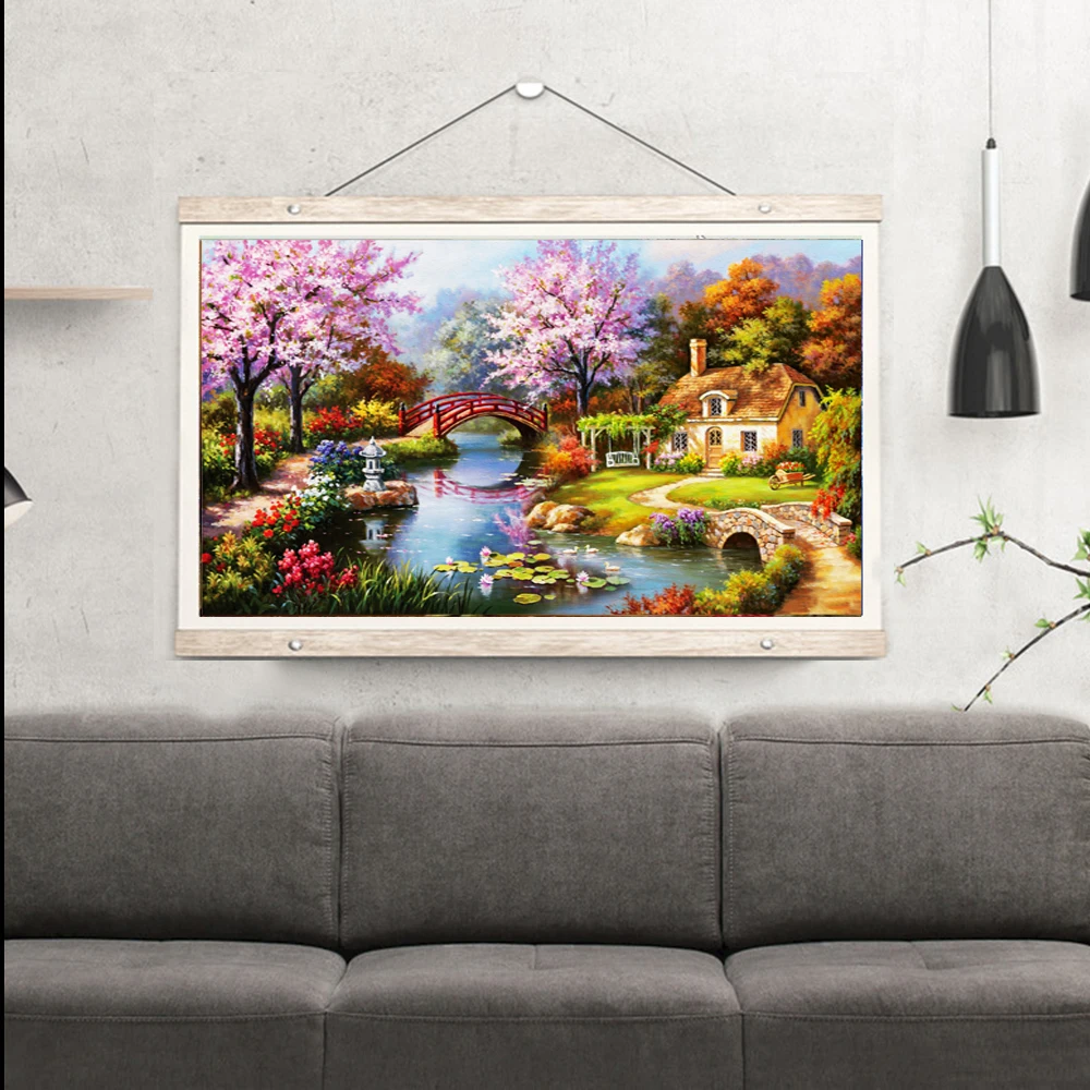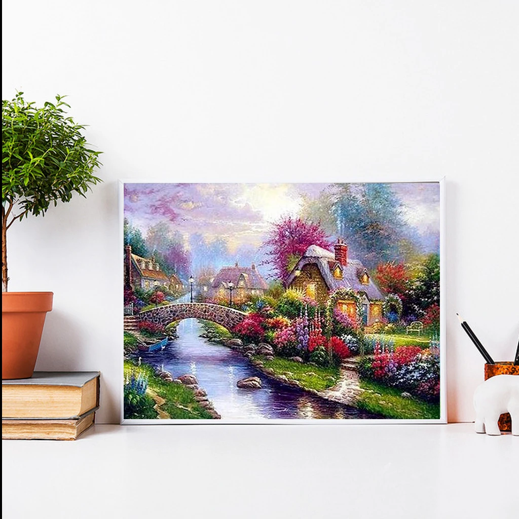 Алмазная живопись, Алмазная мозаика 5d с пейзажем и цветами, сделай...