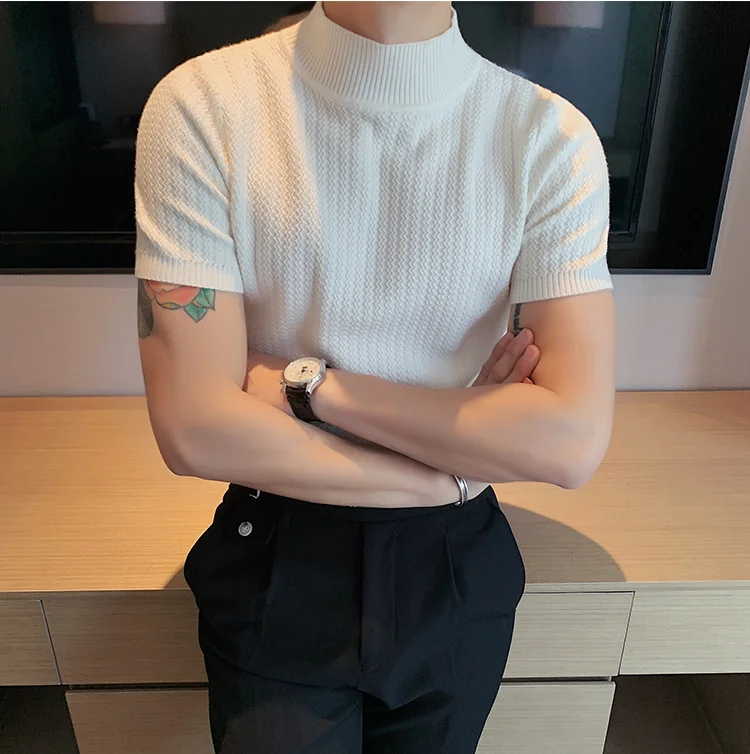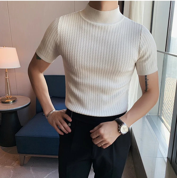 Трикотажный свитер с коротким рукавом для мужчин, универсальный обл...