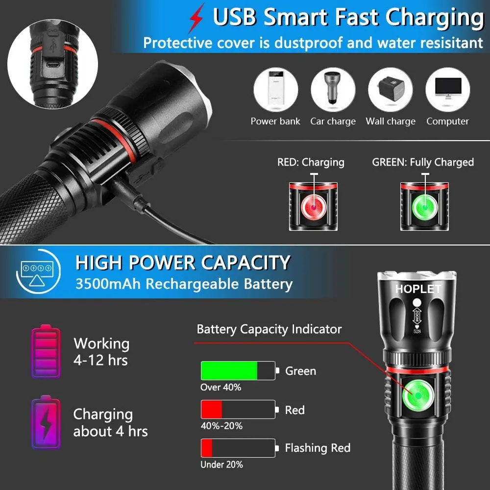 Этот товар представляет собой тактический светодиодный фонарь из алюминиевого сплаваВнутренняя проводка применяет высокоэффективный усилитель цепи, и может использовать батареи в большой степени.Подходит для любителей спорта на открытом воздухе для активного отдыха, например, охоты, велоспорта, рыбалки, альпинизма, кемпинга и т. д.