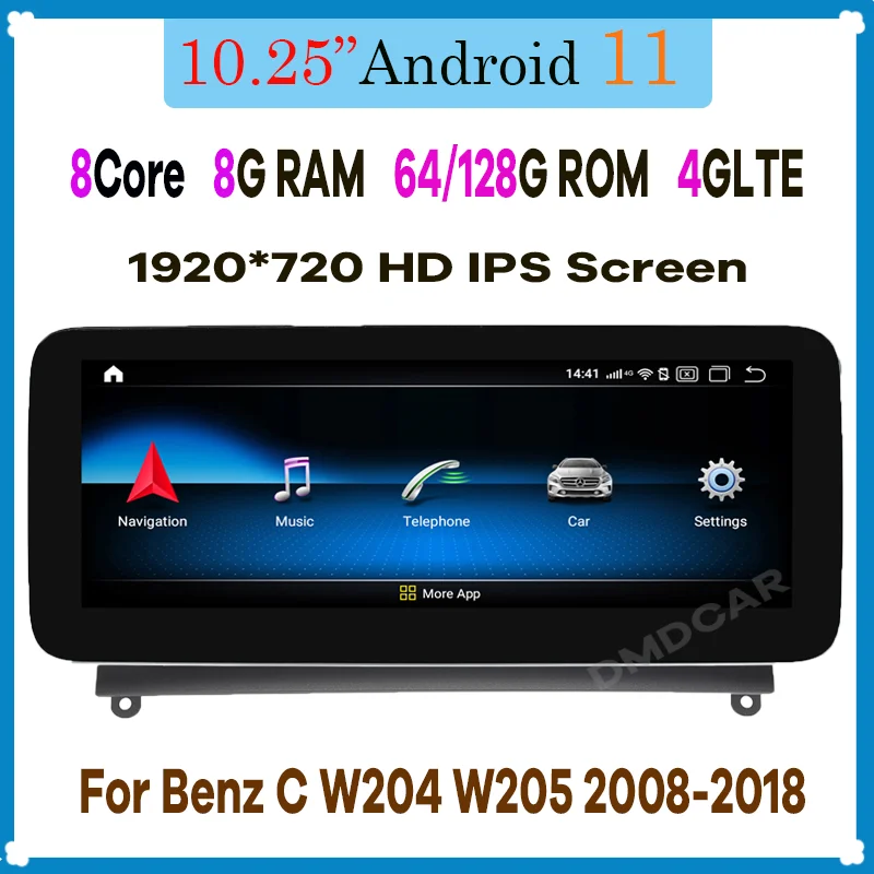 Автомагнитола для Mercedes Benz C-Class W204, W205, GLC X253, V Class W446 128-2008, Android 11, мультимедийный проигрыватель 8 + 2018G, GPS-навигация
