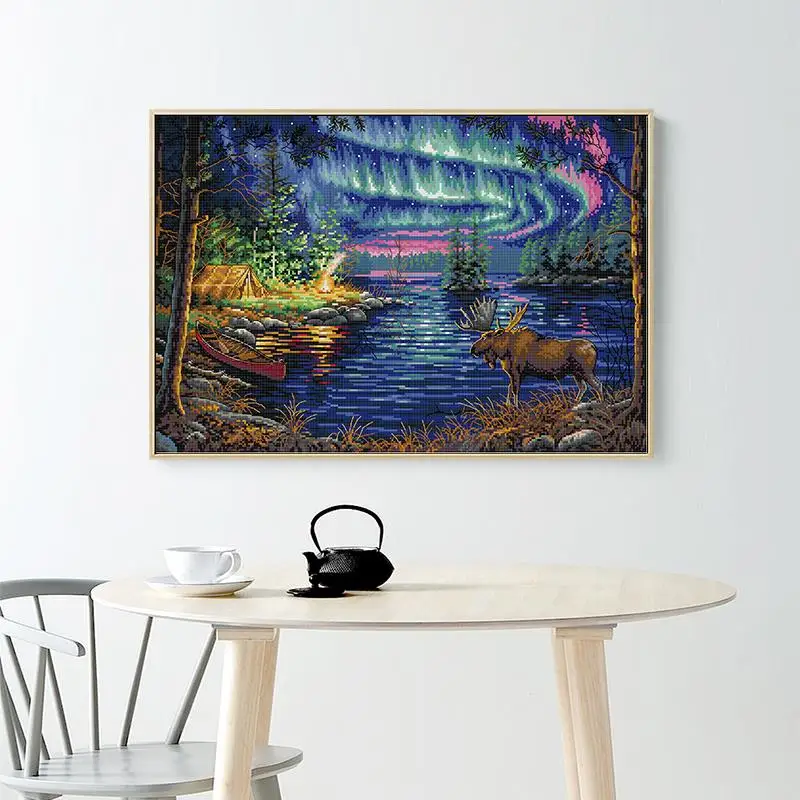DIY Северный свет пейзаж Картина Вышивка крестиком комплект Aida 11CT 14CT счетное тиснение холст вышивка набор украшение дома подарок