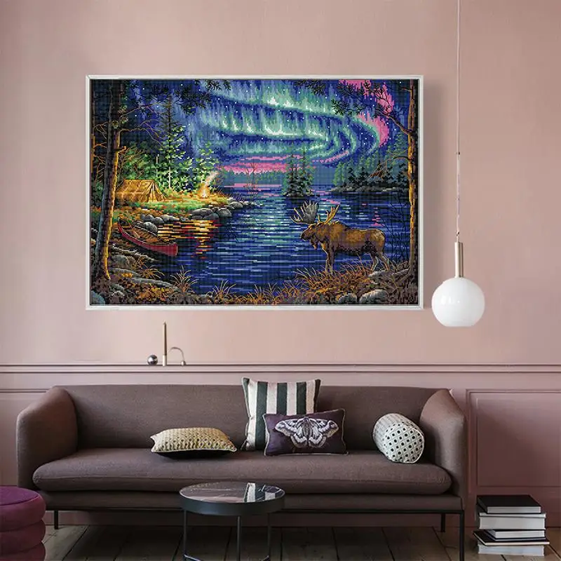 Набор для вышивки крестиком сделай сам, картина с северным светом, Набор для вышивки крестиком Aida 11CT 14CT, подсчет, штамповка, холст, подарочное украшение для дома