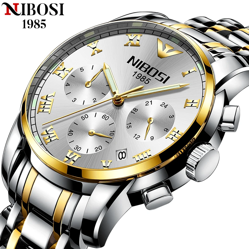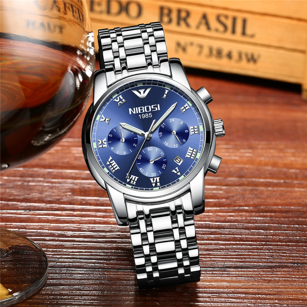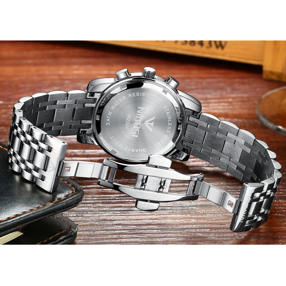 Часы NIBOSI Мужские кварцевые, роскошные брендовые водонепроницаемые повседневные, из нержавеющей стали