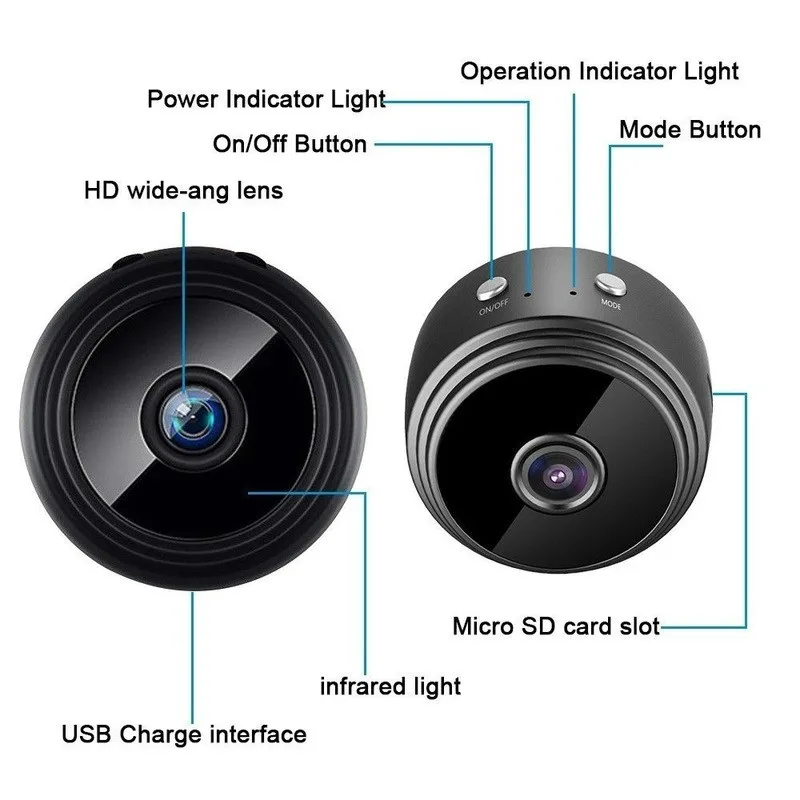 Платформа приложения: V380 Pro Формат видео: AVI Разрешение видео: 1080P Частота кадров: 25 кадров в секунду Угол обзора: 90 градусов расстояние обнаружения движения камеры: 6 метров прямое Время работы батареи: 1 час сжатого формата: H.264 диапазон записи: 5 квадратных метров емкость хранения: до 128G Система поддержки: android/IOS Потребляемая мощность: 240MA/3,7 V программное обеспечение для воспроизведения: пвпс слой/SMP слой Обнаружение движения: Поддержка Интерфейс: 5-ти штырьковым микро Зарядка через USB напряжение: DC-5V Размеры: 4,5*4*2 см