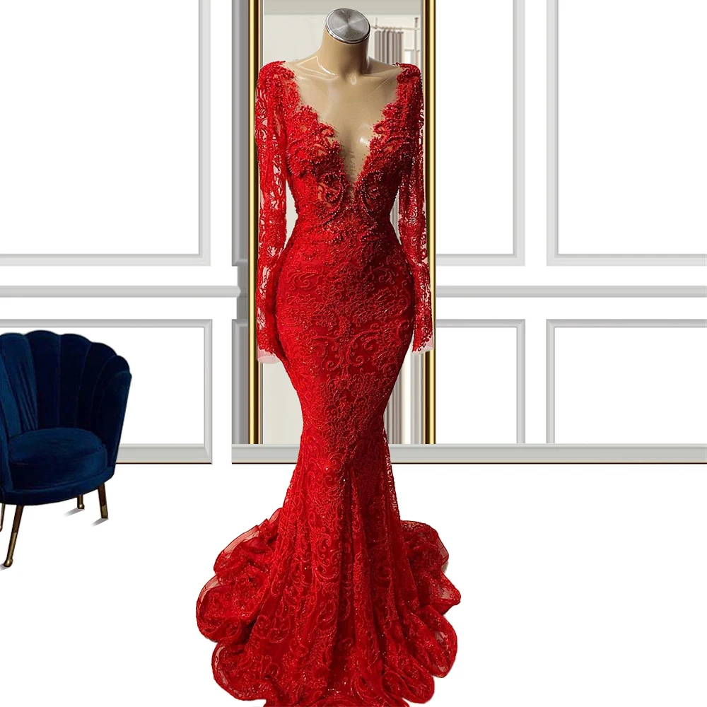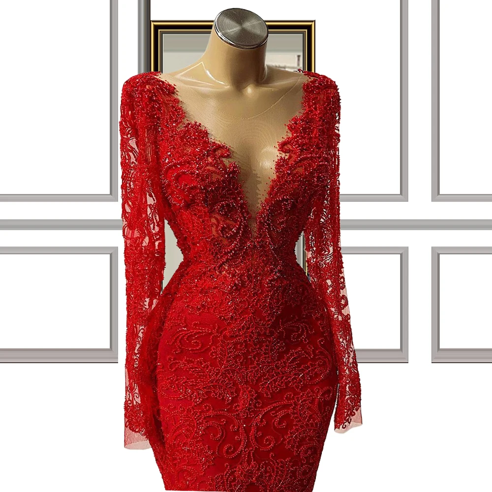 Красные женские вечерние платья с длинным рукавом, элегантная одежд...