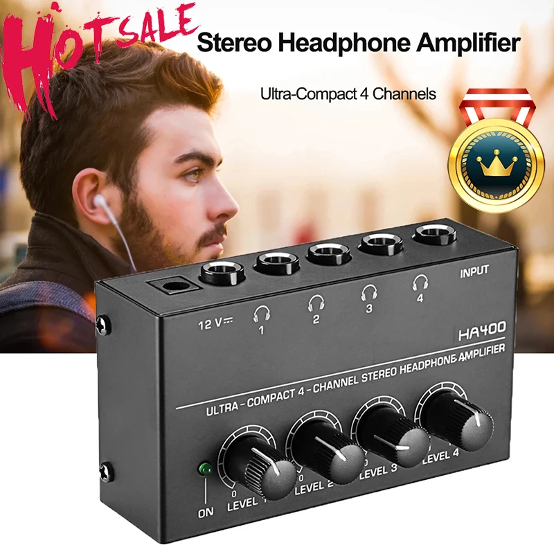 Ультракомпактный 4-канальный усилитель для наушников HA400, аудио стерео усилитель с адаптером для записи музыкального миксера