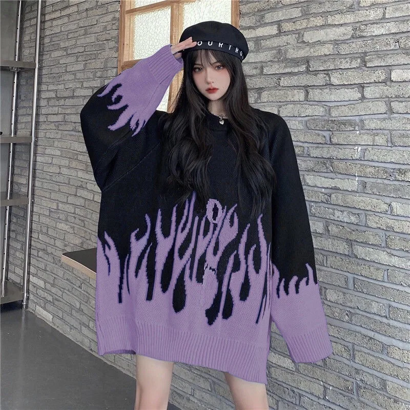 Пуловер женский вязаный, жаккардовый, свободный, в стиле Харадзюку