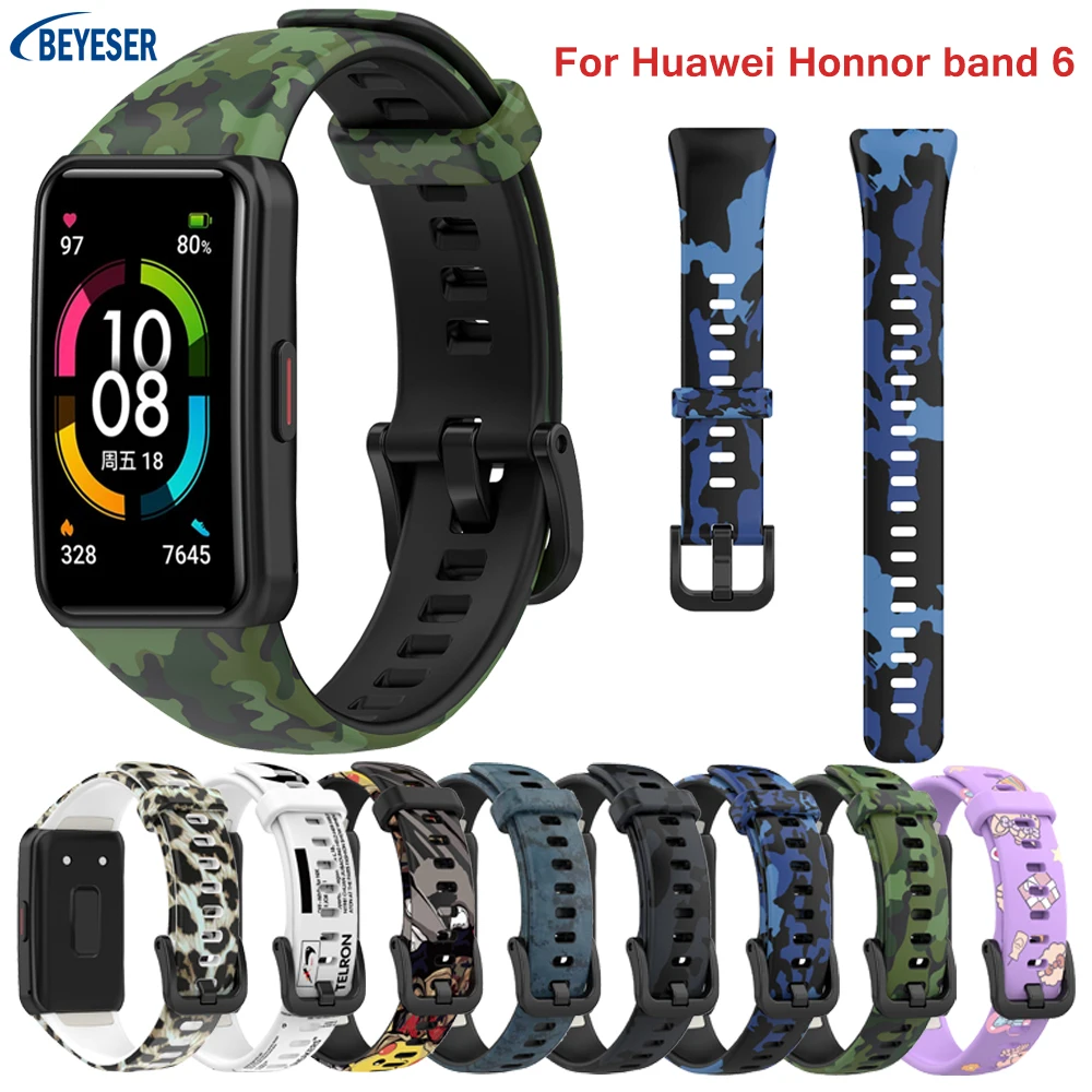 Ремешок BEYESER силиконовый с принтом для Huawei Band 6, сменный Браслет для Honor Band6, камуфляжный ремешок для наручных часов, Новинка