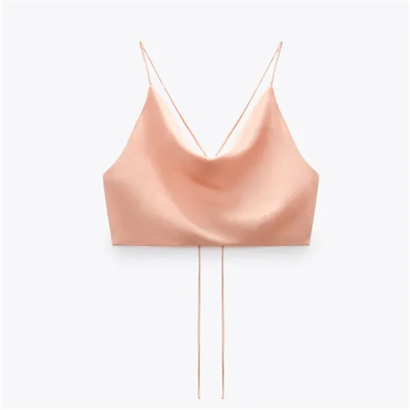 Женский Атласный топ TRAF, летний короткий топ розового и белого цв...