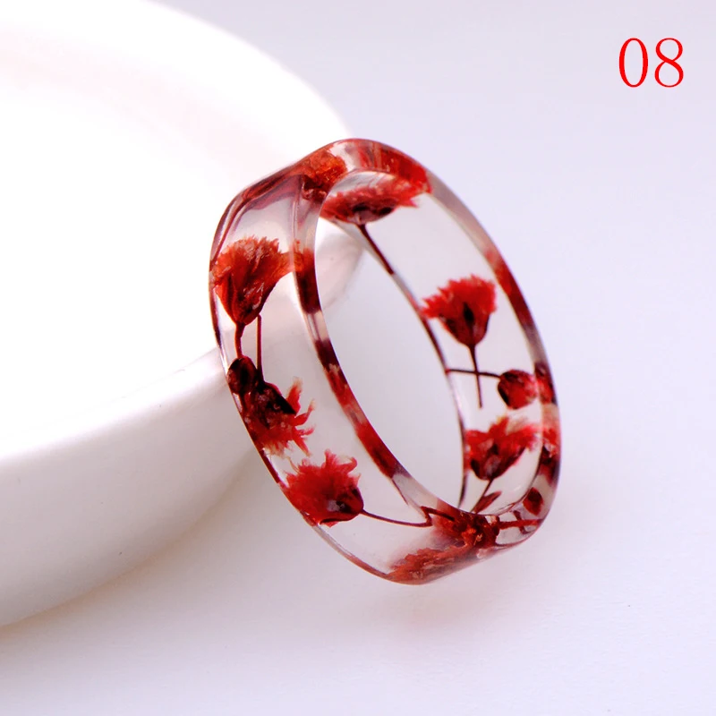 Кольцо из прозрачной смолы в виде сушеных цветов, 8 цветов