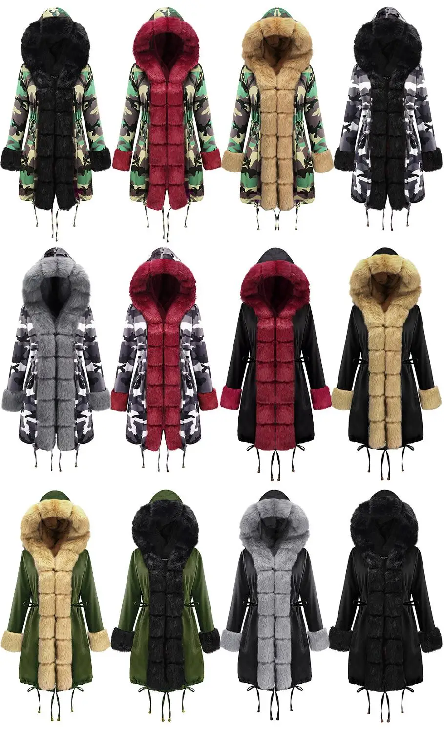 Женская куртка с мехом и искусственным мехом, Камуфляжная парка, То...