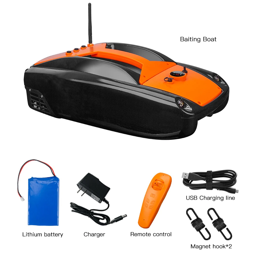 Этот дистанционный пульт лодки для доставки прикорма и оснастки может нагрузить приманки для до 1,5 кг. Сильный сигнал обеспечивает дальность 300 метров. Это отличное оборудование для любителей рыбалки.Особенности:Жесткая конструкция выдерживает жесткие элементы ветра и волн.Многофункциональный пульт дистанционного управления контролирует Круизное направление, байинг, фары, задний фонарь, фонарик.Сильный сигнал с дальним диапазоном управления около 300 метров.Максимальная грузоподъемность около 1,5 кг.Лодка с цифровым дисплеем для индикации батареи.Светодиодный фонарь и сигнальные задние фонари обеспечивают хорошую видимость и позволяют определить точное положение и направление.Мощный бесшумный двигатель не отпугнет рыбу.Характеристики:Лодка Размеры: 56*25*18 см/22*9,8 * 7.1inМаксимальная нагрузка: 1,5 кг/3.3lbРадиус действия: прибл. 300 мВремя зарядки аккумулятора: 8 часовПульт дистанционного управления: 15*5,5*6 см/5,9*2,2 * 2.4inАккумулятор лодки: 7,4 В 5200 мАчБатарея пульта дистанционного управления: 3,7 V 400mAhПосылка Размеры: 59,5*30*20,5 см/23,4*11,8 * 8.1inПосылка Вес: 2,9 кг/6.4lbПосылка:1 * кормушка для приманки1 * пульт дистанционного управления1 * USB кабель для зарядки (для пульта дистанционного управления)1 * зарядное устройство (для лодки)2 * магнитный крюк