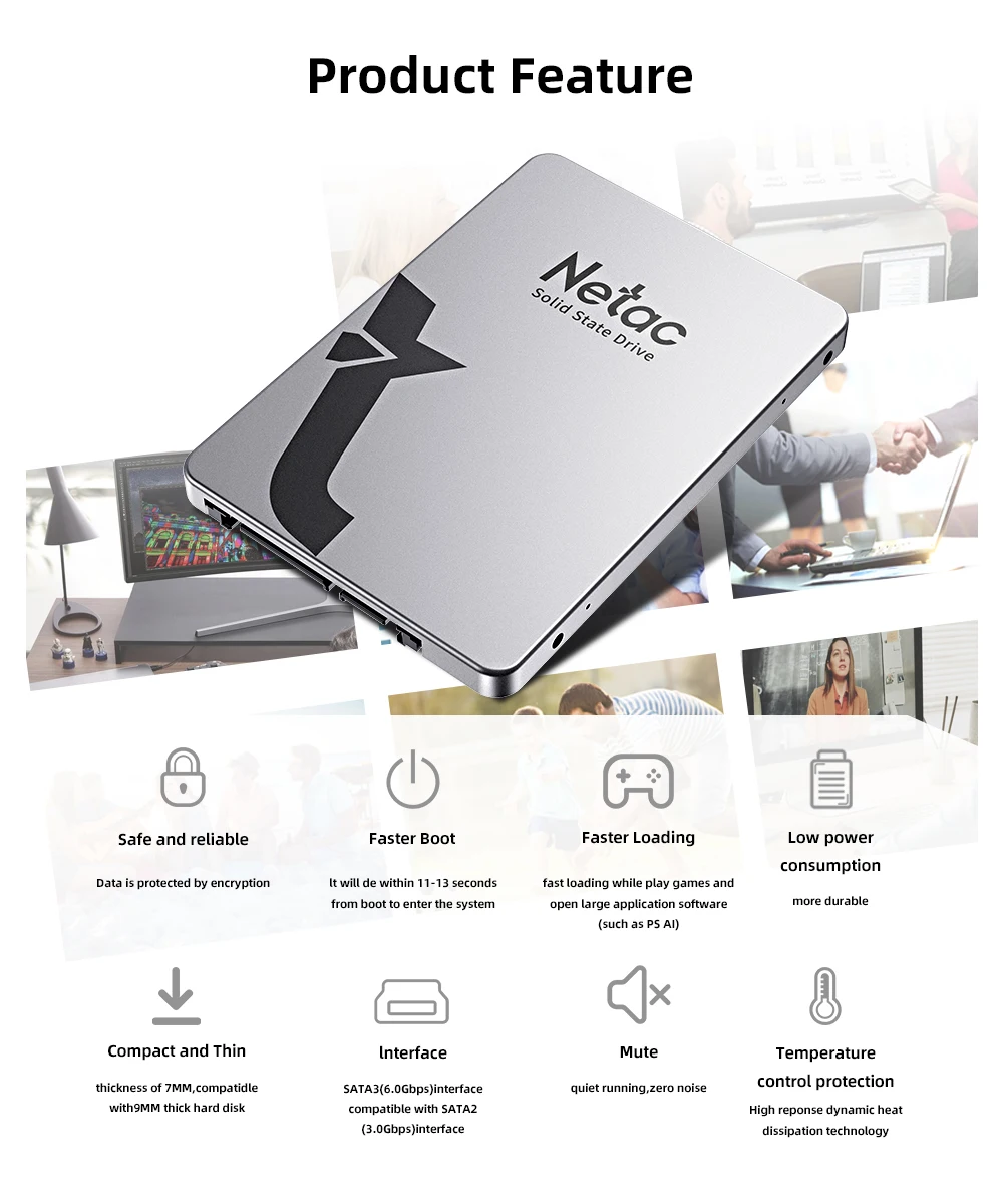 SSD-накопитель Netac, 5122,5 ГБ, 480 дюйма, SATA, 1 ТБ, 2 ТБ