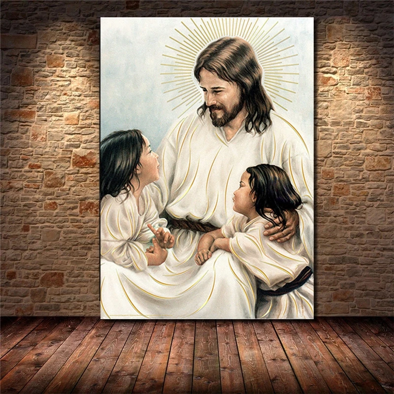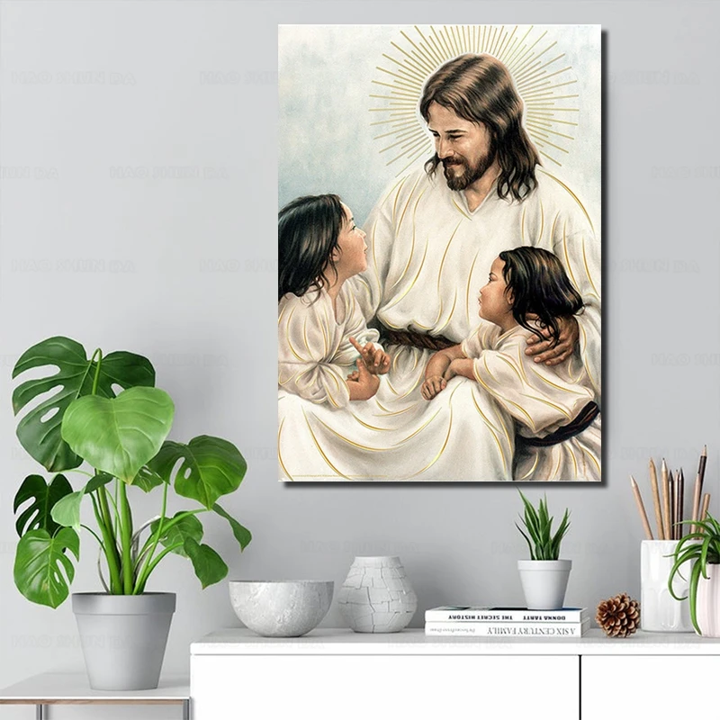 Let the дети приходят ко мне Иисус Христос религиозная настенная печать плакат холст живопись HD Печать Настенный декор