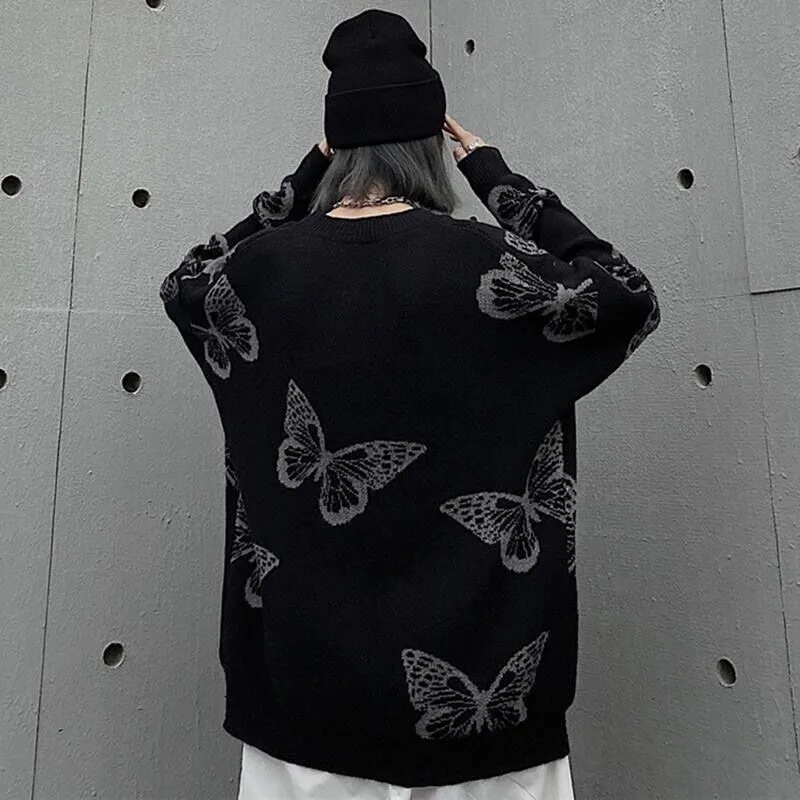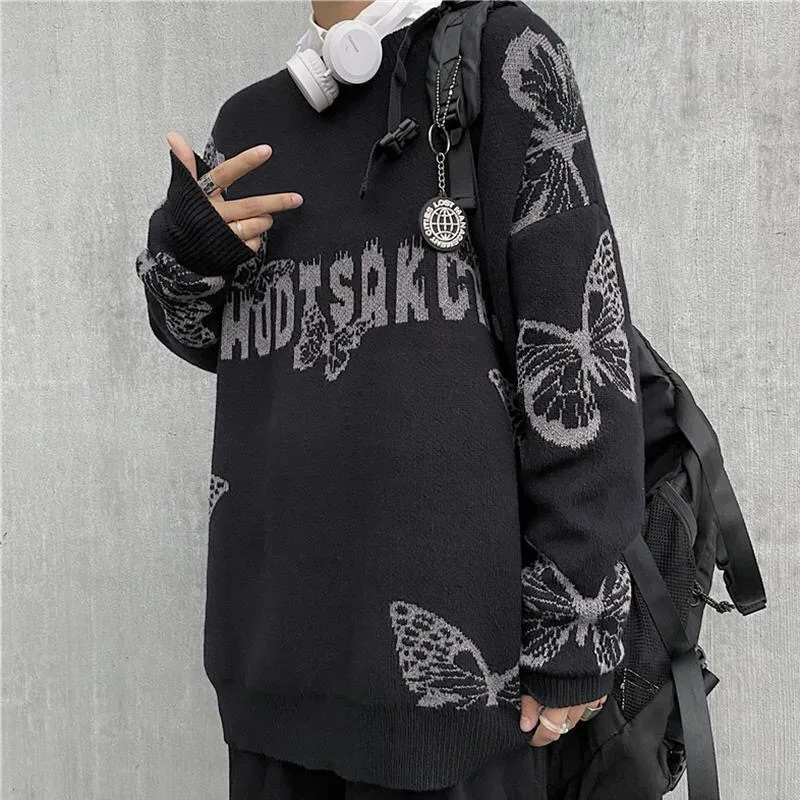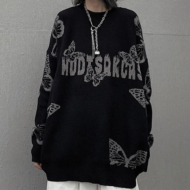 Модный уличный модный бренд Ins темно-Черная бабочка с надписью жаккардовый пуловер, свитер