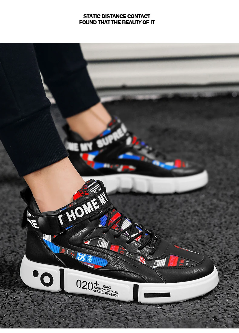 Осенне-зимняя удобная повседневная мужская обувь с яркими граффити на плоской подошве, мужские высокие кроссовки, дышащая женская и мужская обувь, размер 35-44