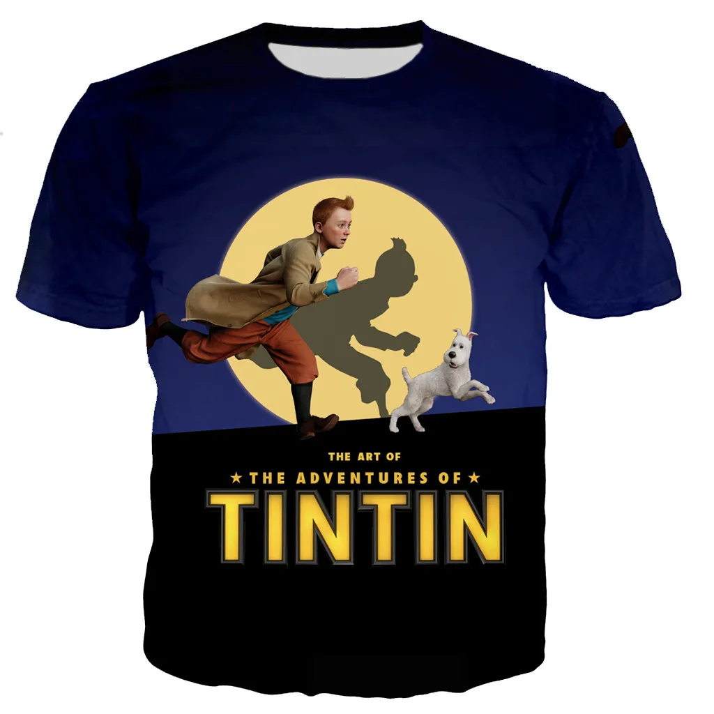 2021 летняя футболка для мальчиков и девочек с 3D Тинтин, модная фу...