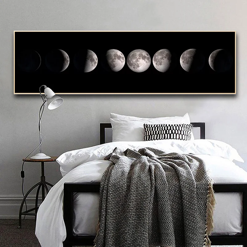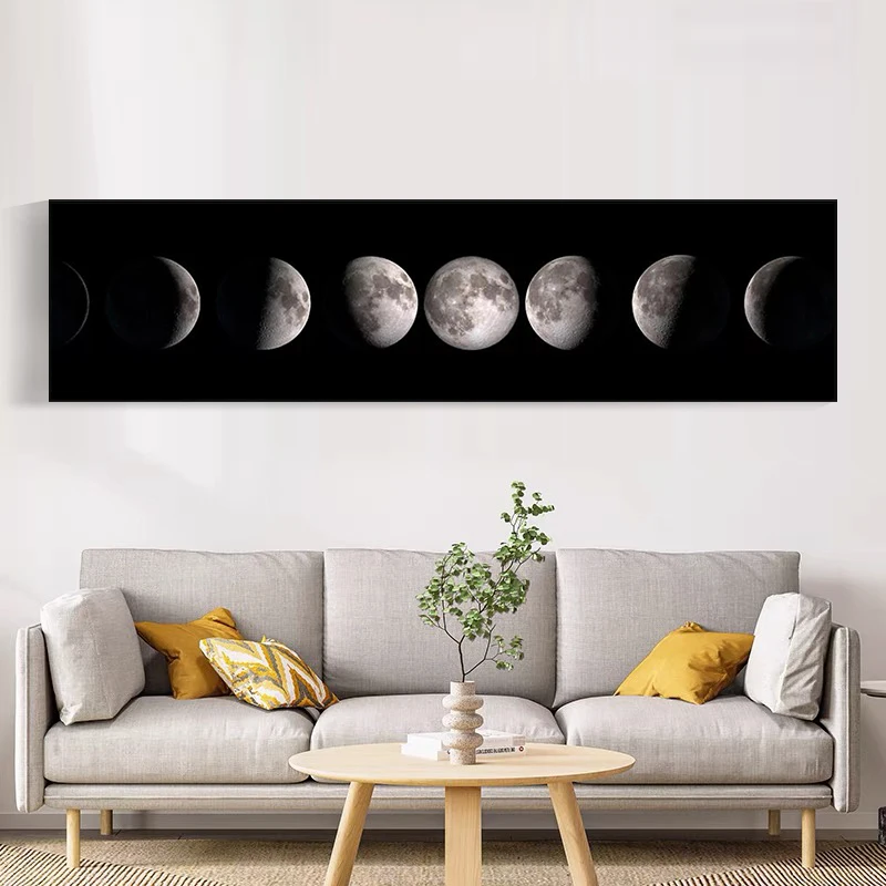Плакат на холсте с фазой черной и белой Луны, Художественная печать, длинная картина Луне, нордическое украшение, абстрактная Настенная картина для гостиной