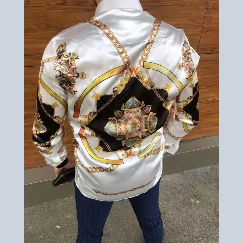 Новая роскошная золотисто-черная рубашка, Мужская облегающая Повсед...