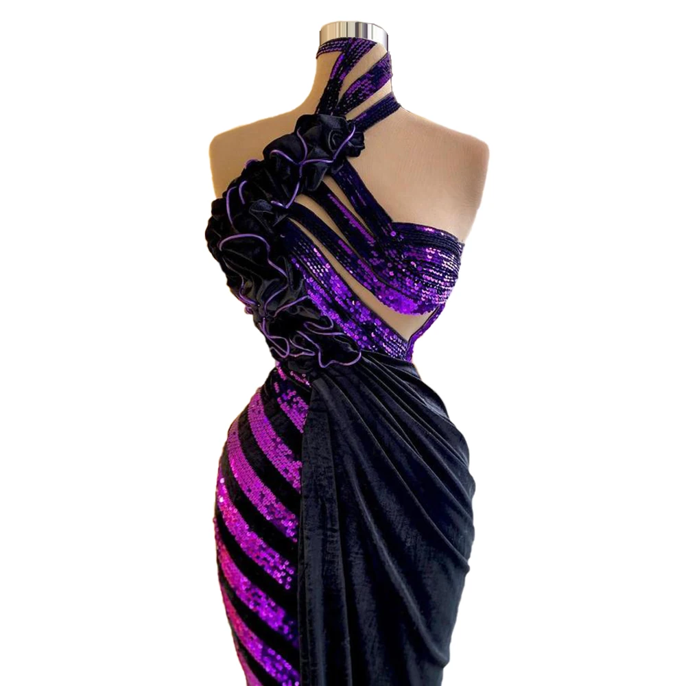 Женское вечернее платье с блестками Floria, фиолетовое блестящее пл...