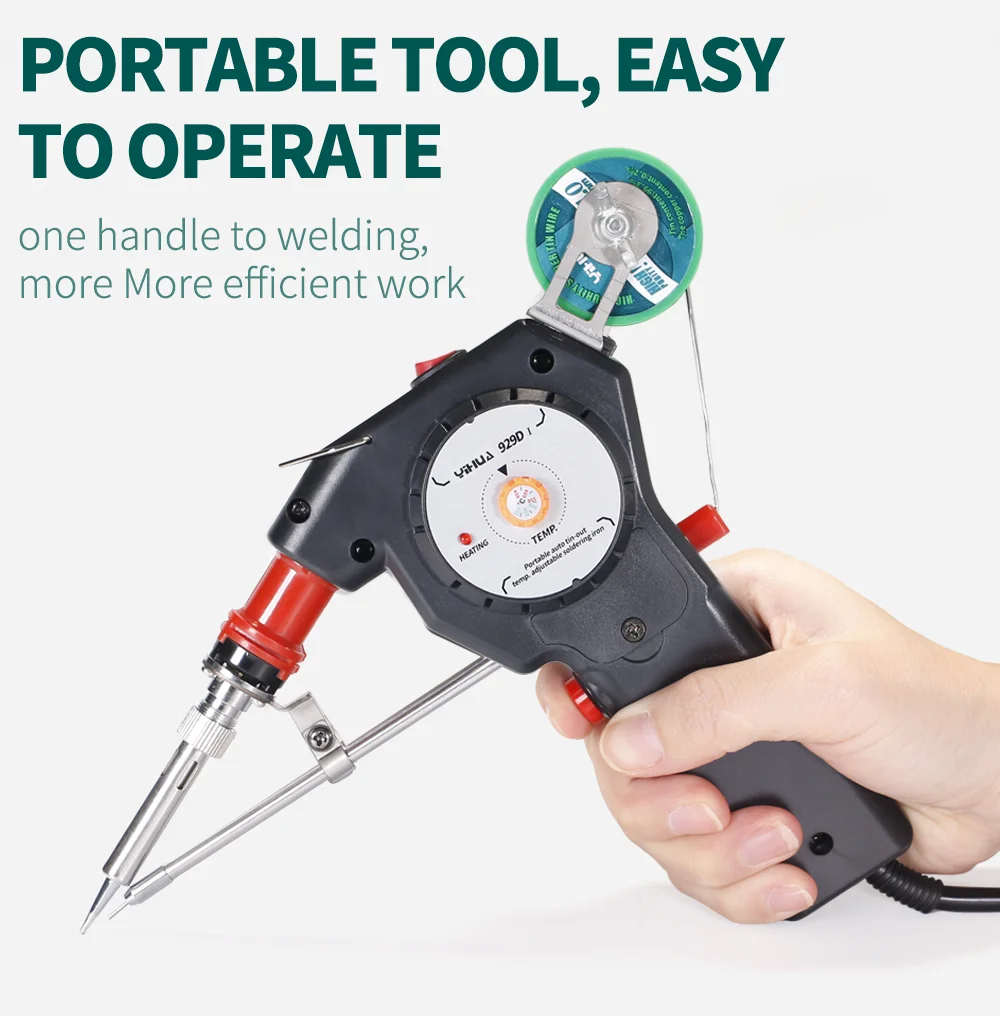Электрический паяльник YIHUA 929 с регулируемой температурой, оловянный автоматический припой с проводом, ручной паяльник