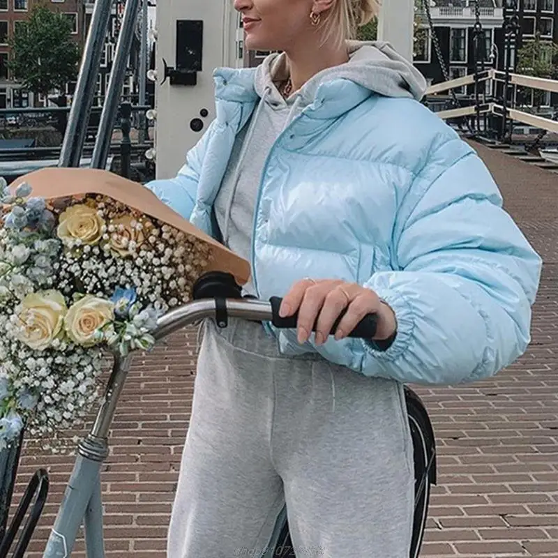 Светло-голубая зимняя короткая куртка ecoine, теплые Пузырьковые па...