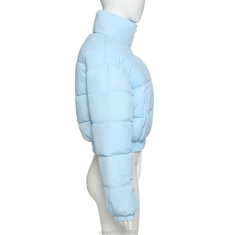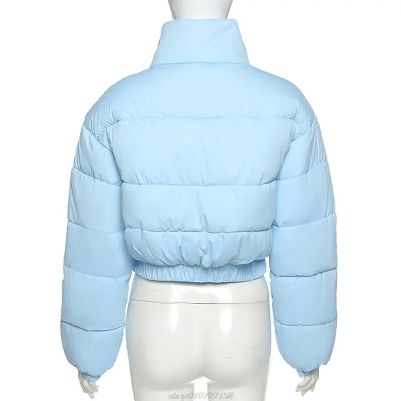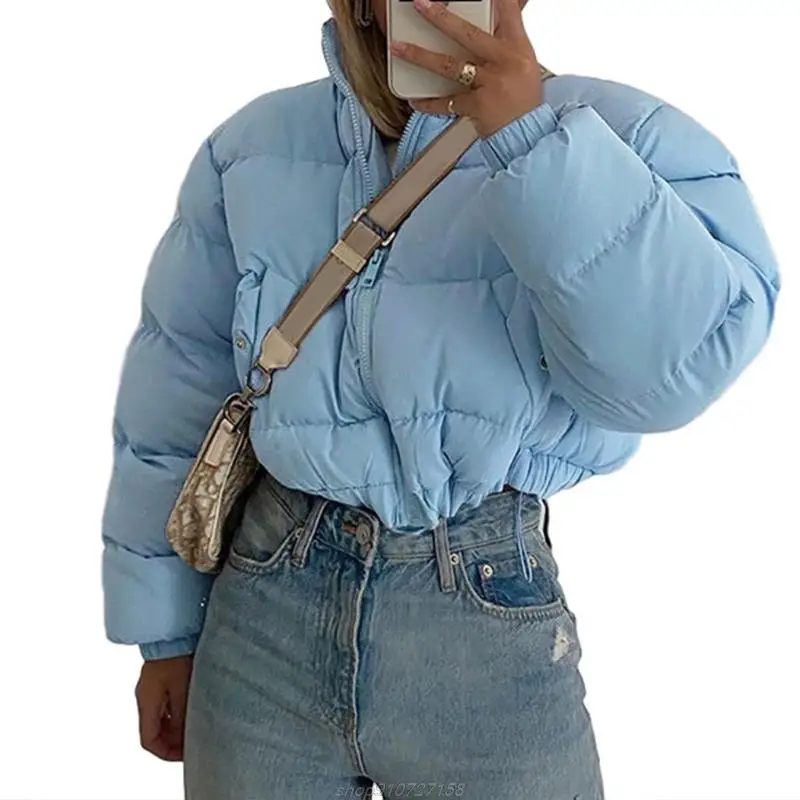Женская зимняя короткая пуховая куртка с длинным рукавом и воротником-стойкой