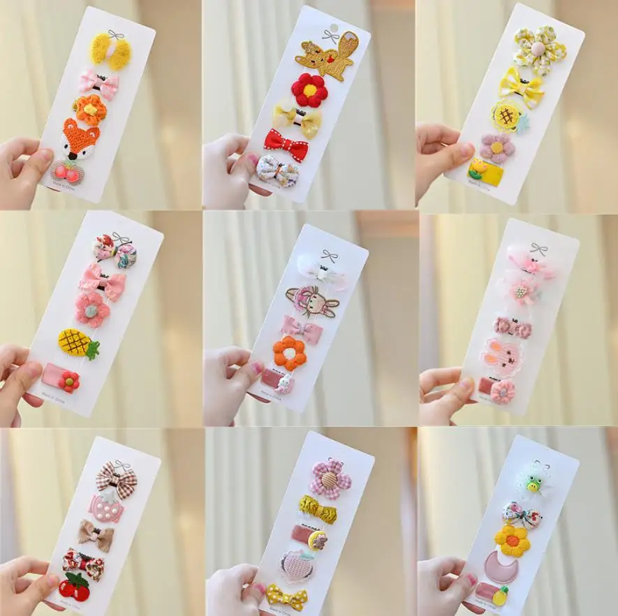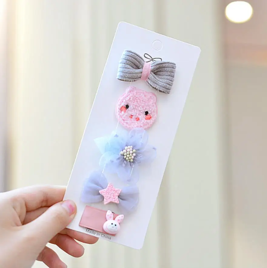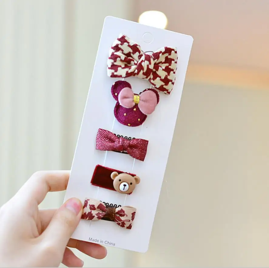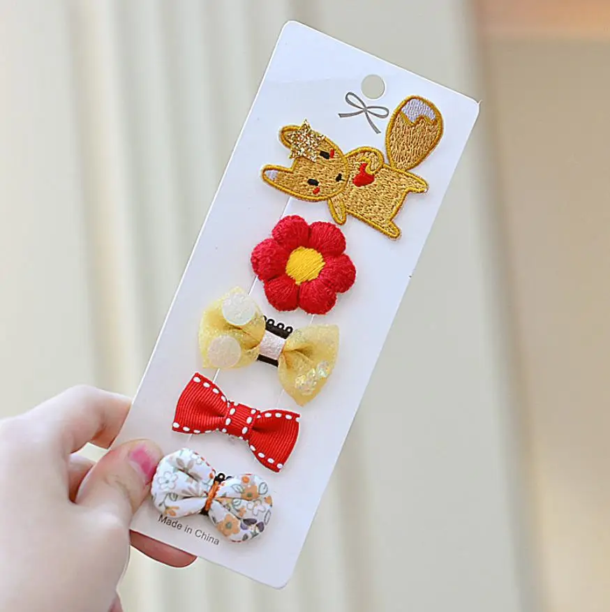 Заколки для волос Детские ручной работы, 5 шт.компл., бант из ткани, J158