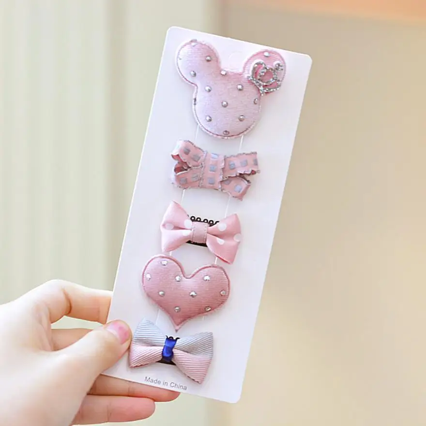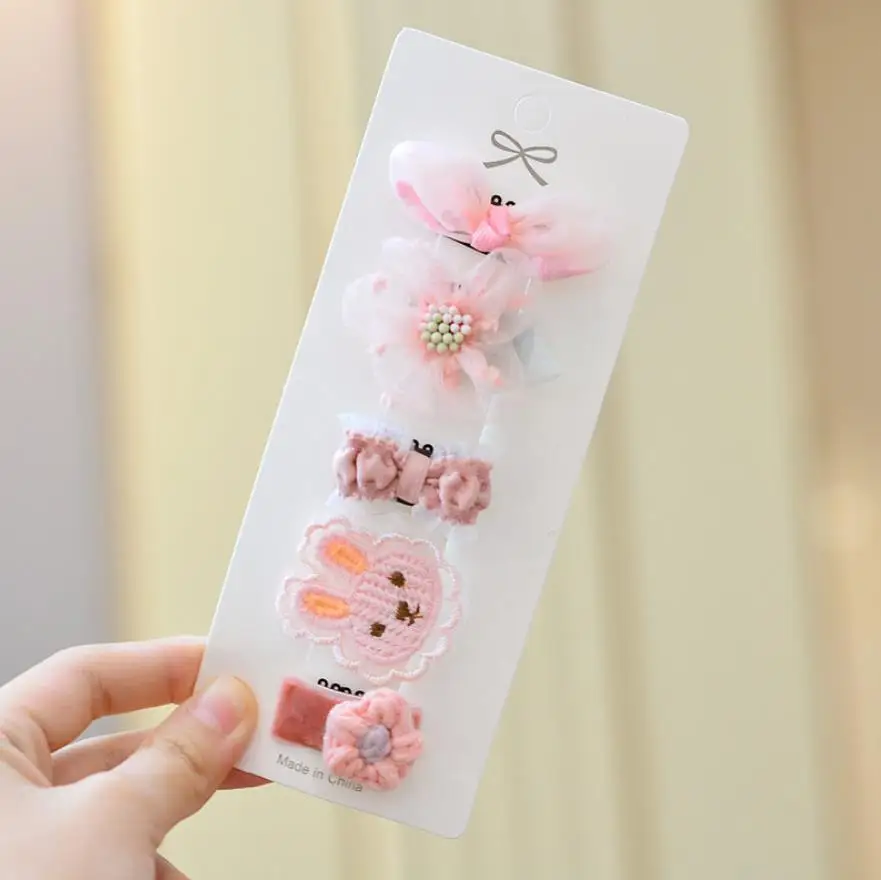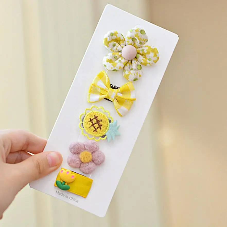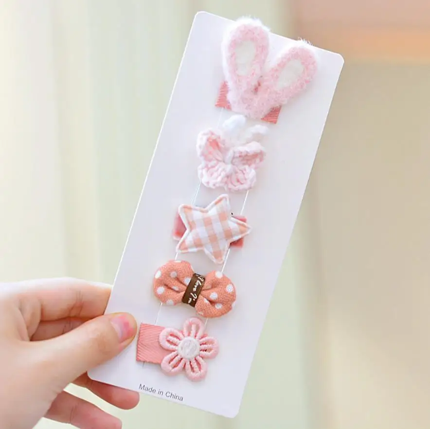 Заколки для волос Детские ручной работы, 5 шт.компл., бант из ткани, J158