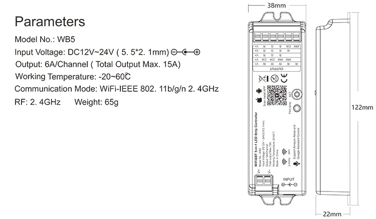 WB5 DC12-24V 5 в 1 светодиодный контроллер Tuya 2,4G Wifi для одноцветной CCT RGB RGBW RGB + CCT Светодиодная лента