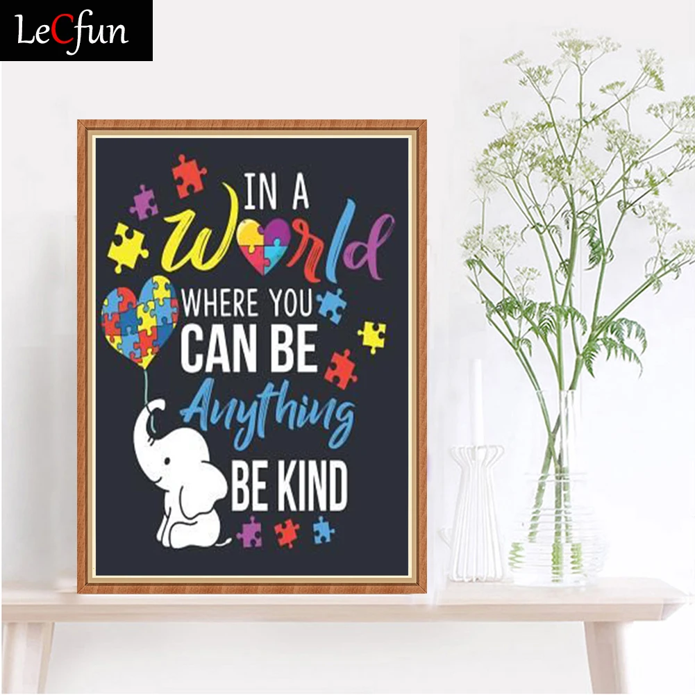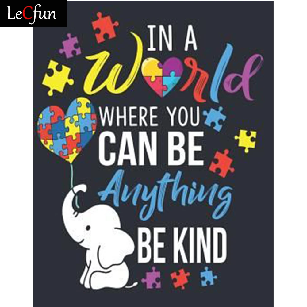 LeCfun алмазная живопись Eleephant, аутизм, полностью круглые, квадратные, сверло, бриллианты, драгоценный камень, искусство, вышивка крестиком, вышивка, домашний декор, подарок