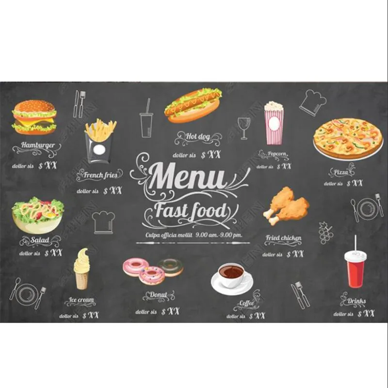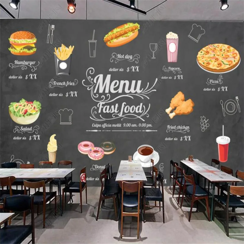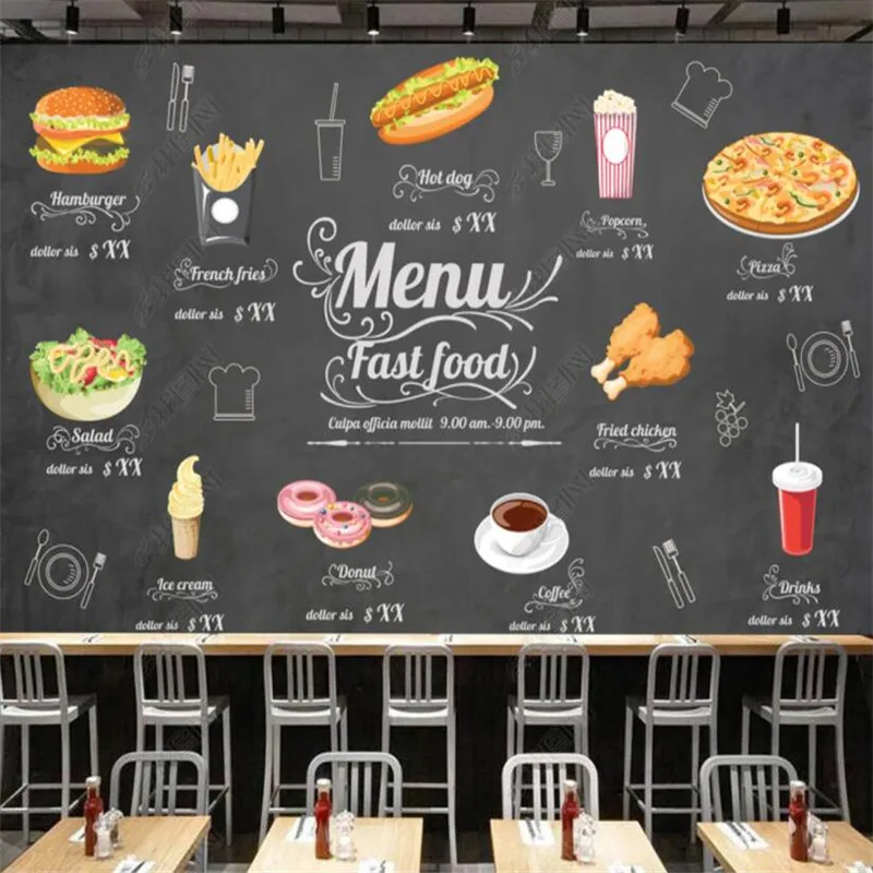 Современные ресторанные обои с гамбургерами, 3D доска, ручная роспи...