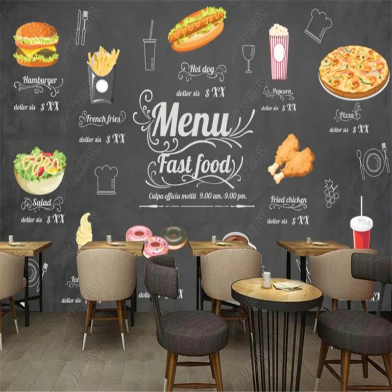 Обои на заказ с гамбургерами, пиццей, закусками, барами, декор для ресторана в западном стиле, настенные самоклеящиеся обои 3D