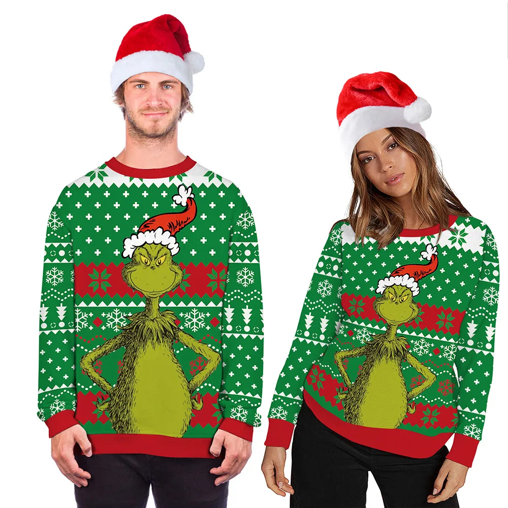 ОсеньЗима 2021 Рождественский свитер с зелеными волосами Монстр 3D ...