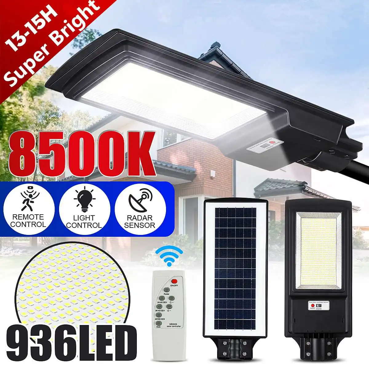 Суперъяркий уличный светильник на солнечной батарее с регулируемой яркостью, Модернизированный уличный охранный светильник с пассивным ИК датчиком движения, водонепроницаемый настенный светильник IP65, 936 светодиодов
