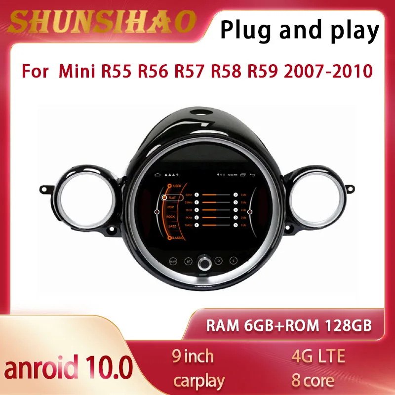 Для Mini Cooper Mini R55 R56 R57 R58 R59 2007-2010 левый и правый руль1. Поддержка операционной системы: Система Android 10,0.2. Поддержка 4 ГБ ОЗУ/6 ГБ3. Поддержка 64 Гб ROM/128 ГБ4. Поддержка 8-ядерного ЦП.5. Поддержка SIM-карты 4G.6. Поддержка функции carplay.Особенность:1. Поддержка 9-дюймового сенсорного экрана.2. Поддержка музыки по Bluetooth и телефона по Bluetooth.3. Встроенная система GPS-навигации.4. Поддержка функции двух зон.5. Поддержка воспроизведения видео 1080P.6. Поддержка высокоточного воспроизведения музыки.7. Встроенный приемник Wi-Fi.8. Поддержка управления рулевым колесом.9. Поддержка USB-входа.10. Поддержка отображения даты и времени.11. Поддержка play store.12. Поддержка управления папками.13. Поддержка графического пользовательского интерфейса.14. Поддержка установки приложений.15. Встроенный микрофон или поддержка внешнего микрофона.16. Поддержка функции календаря.17. Поддержка оригинального автомобильного усилителя.18. Поддержка функции обратной камеры (опционально).19. Поддержка цифрового радио DAB (опционально).20. Поддержка системы контроля давления в шинах (TPMS).(опционально).