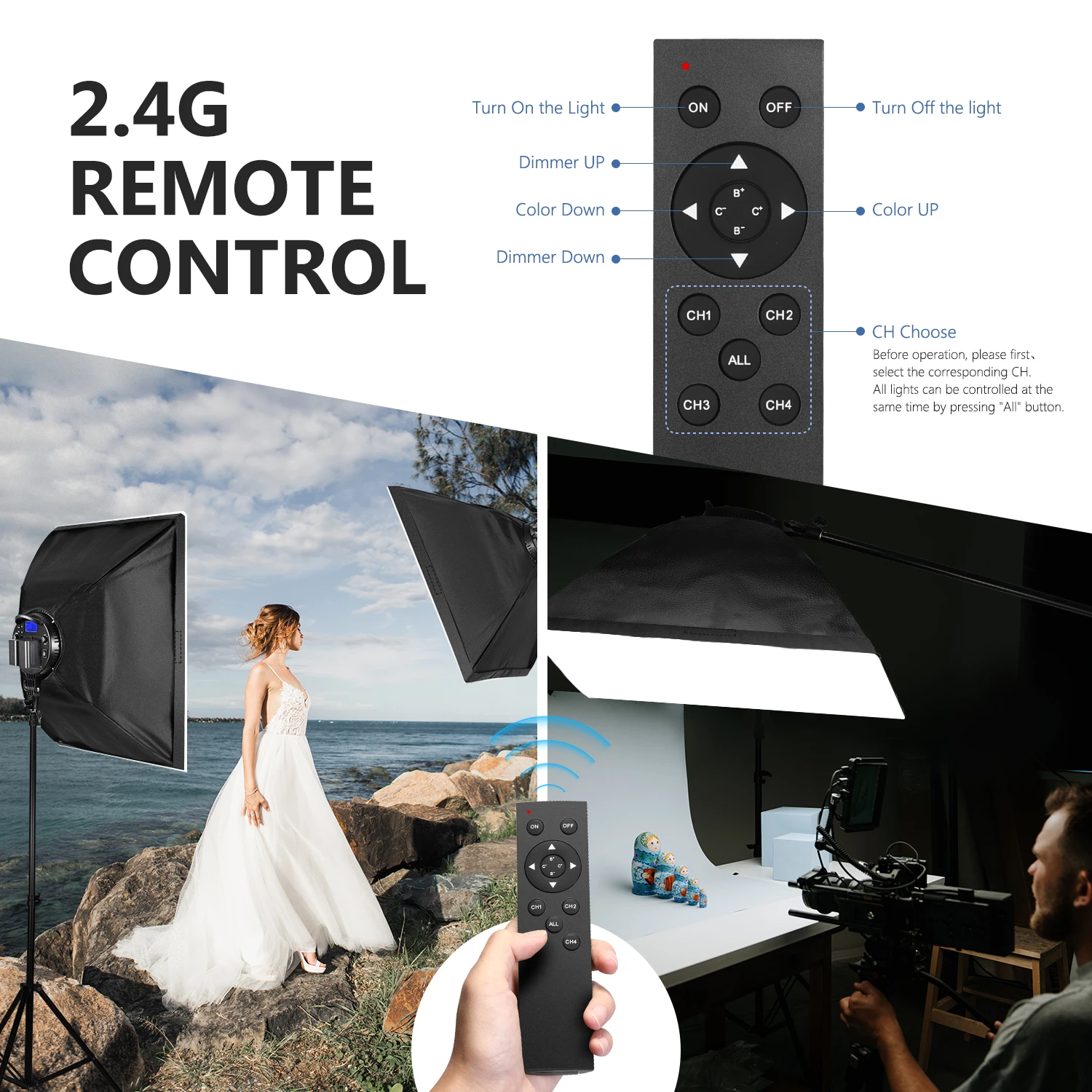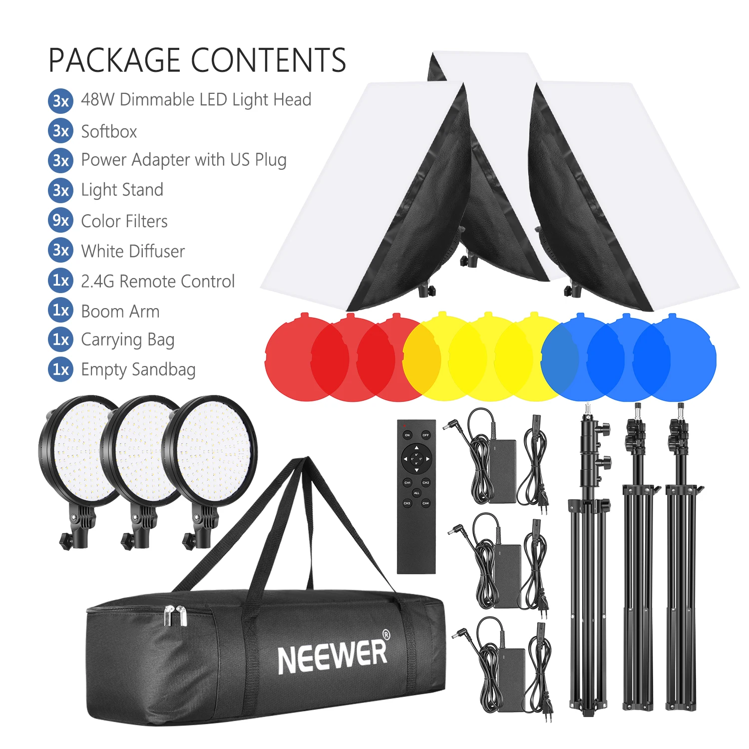 Leewer 3-Pack 2,4G светодиодный светильник софтбокса ing Kit с цветным фильтром: 20 "x 28" софтбокс, 3200-5600K 48W Диммируемый светодиодный светильник с 2,4G пультом дистанционного управления, светильник-стойка, стрела стрелы, сумка для фото студийной видеосъемки