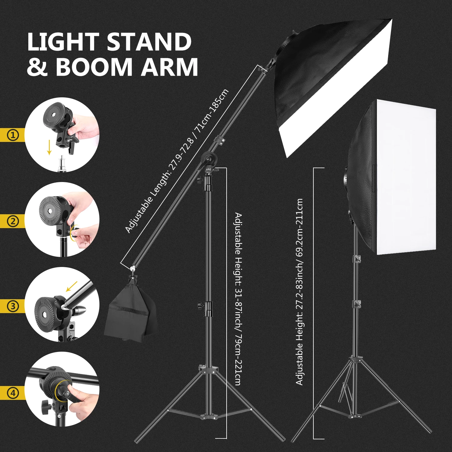 Комплектация: (3) софтбокс с регулируемой головкой на светодиодный светильник 48 Вт, (3) подставка на светильник из алюминиевого сплава; (3) адаптер питания с вилкой EU/UK/US; (9) цветной фильтр; (3) белый диффузор; (1) Пульт дистанционного управления 2,4G; (1) стрелы; (1) большая сумка для переноски; (1) пустая песочница; идеально подходит для портретной фотосъемки, Live show, YouTube Видеосъемка, домашняя студия, наружная съемка, групповые снимки и т. Д.