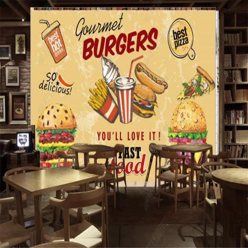 Ретро барные обои на заказ с изображением гамбургеров, пиццы, закусок, декор для ресторана, Фреска, самоклеящаяся контактная бумага, 3D обои