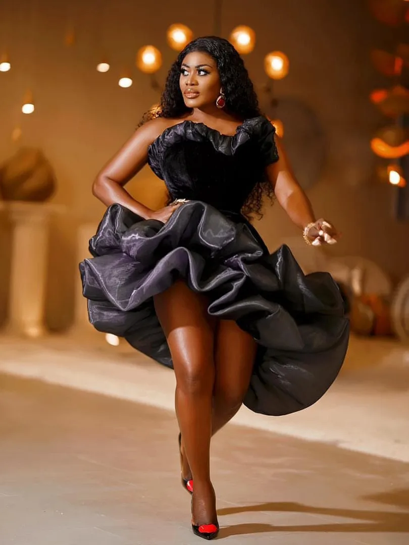 Женское вечернее платье без бретелек, черное платье из органзы с оборками
