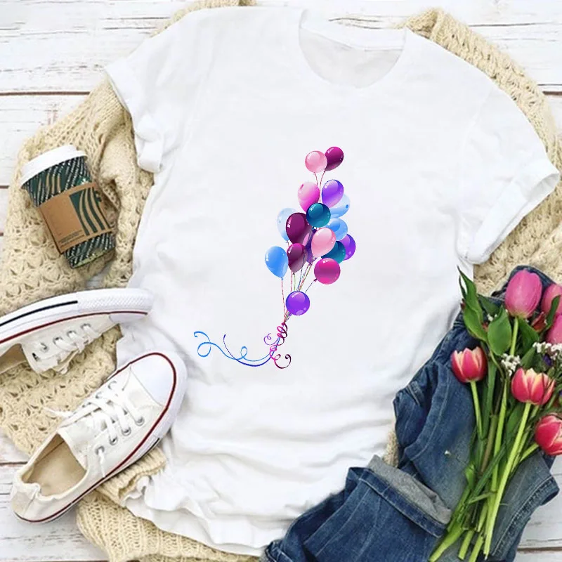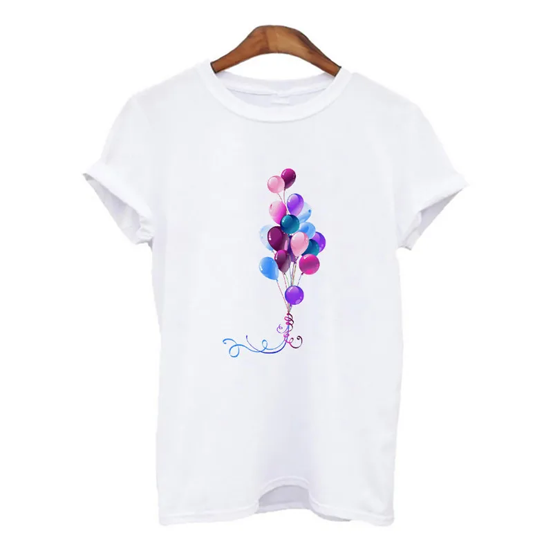 Футболка женская с круглым вырезом, модный белый топ с принтом воздушных шаров в стиле Харадзюку, Повседневная рубашка с коротким рукавом, на лето