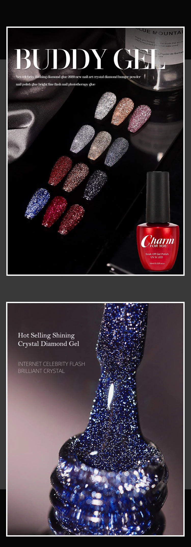 Алмазный клей для ногтей, 10 мл, Хрустальный Блестящий светоотражаю...